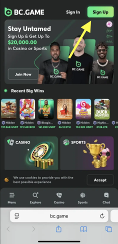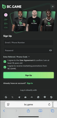 Přihlaste se ke svému účtu v BC.Game. Pokud účet ještě nemáte, dokončete krátkou registraci pomocí e-mailu nebo telefonu.