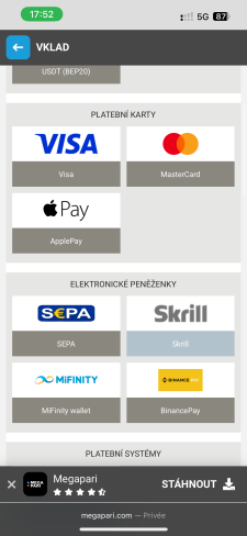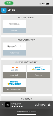 Vyberte si vhodnou platební metodu. Na výběr jich je spousta od platebních karet až po kryptoměny.
