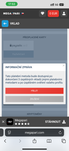Některé možnosti se otevřou až po třech dobitích a ověření účtu.