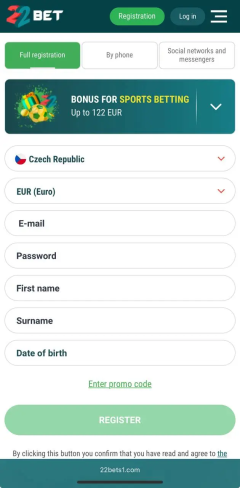 Chceš si otevřít účet v 22bet online casinu a začít hrát o skutečné peníze? Registrace je rychlá a jednoduchá – stačí pár minut a můžeš si vybrat mezi plnou registrací, registrací přes telefon nebo přes sociální sítě. Postupuj podle následujícího návodu: